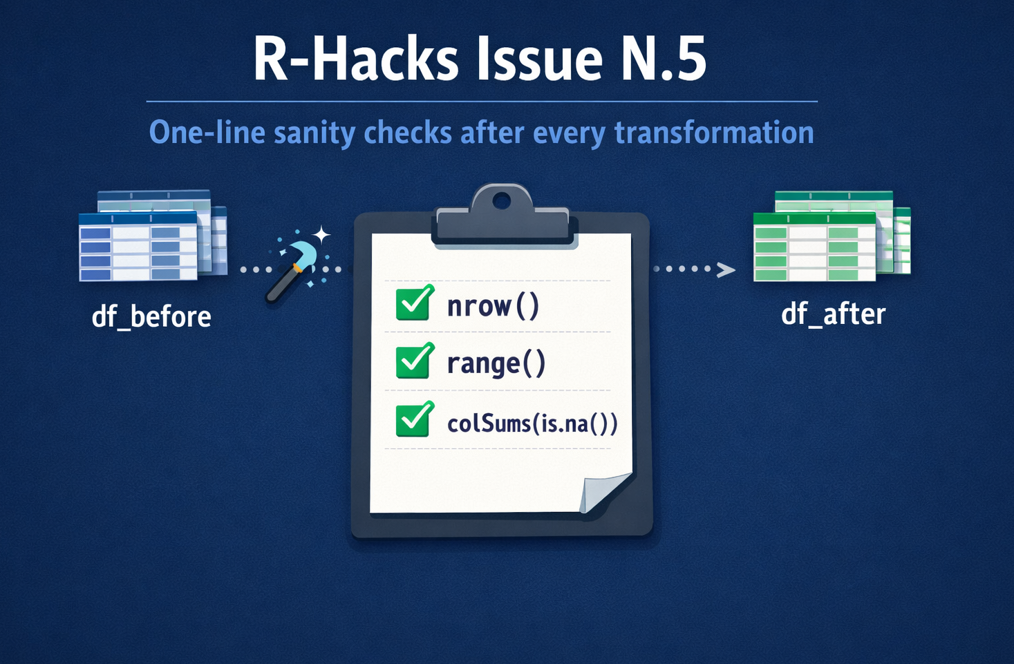 This R-Hack shows how to build a habit of running one-line sanity checks after every major transformation, using a concrete example from our Exploring Diabetes Data tutorial.
